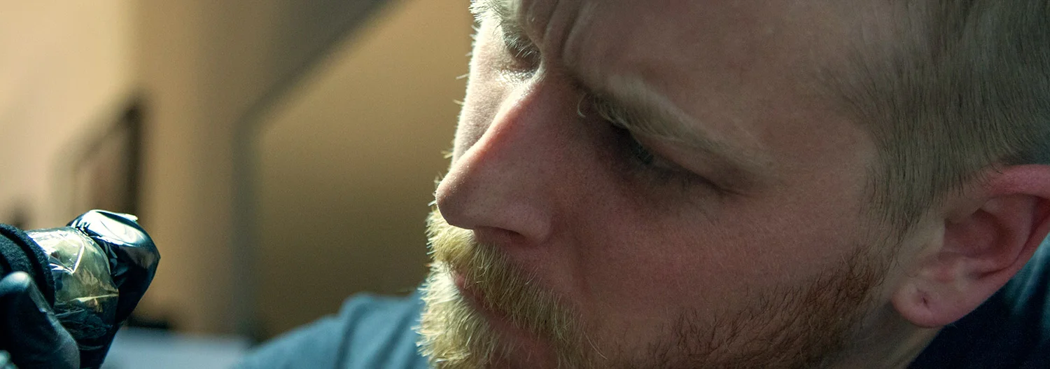 Ich bin seit mehr al 12 Jahren Tätowierer und solange ich mich erinnern kann tief in Abstrakter Kunst und Biomechanik verwurzelt. Die Natur Abstrakter Designs ist das Abbilden unspezifischer Formen und die Abwesenheit des Wiedererkennbaren. Um die gleiche Aufmerksamkeit wie Blumen, Gesichter, Schrift u.Ä. zu erreichen muss man mit allen Tricks arbeiten die einem zur Verfügung stehen. Mein Erfolg in diesem Gebiet steht in direktem Zusammenhang mit meiner Neugierde für Naturwissenschaften und den Menschlichen Verstand.